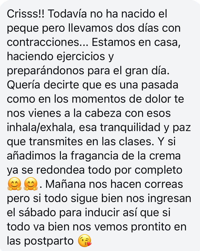 Desde que veas esas dos rayitas hasta el día que nazca tu bebé. Las clases están adaptadas para todas las etapas: primer trimestre (aunque tengas náuseas), segundo (cuando por fin tienes energía) y tercer trimestre (cuando ya no ves tus pies). Si tienes dudas médicas específicas, siempre consúltame previamente y lo miramos juntas.
